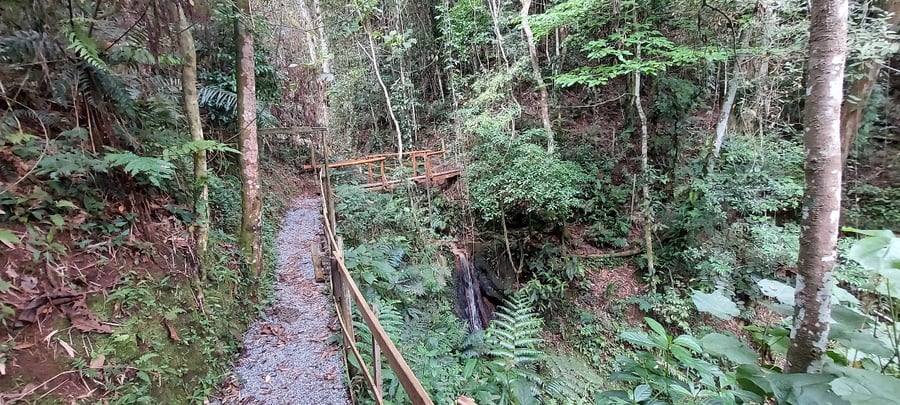 Estacionamento gratuito na estação de trem e no local da trilha.