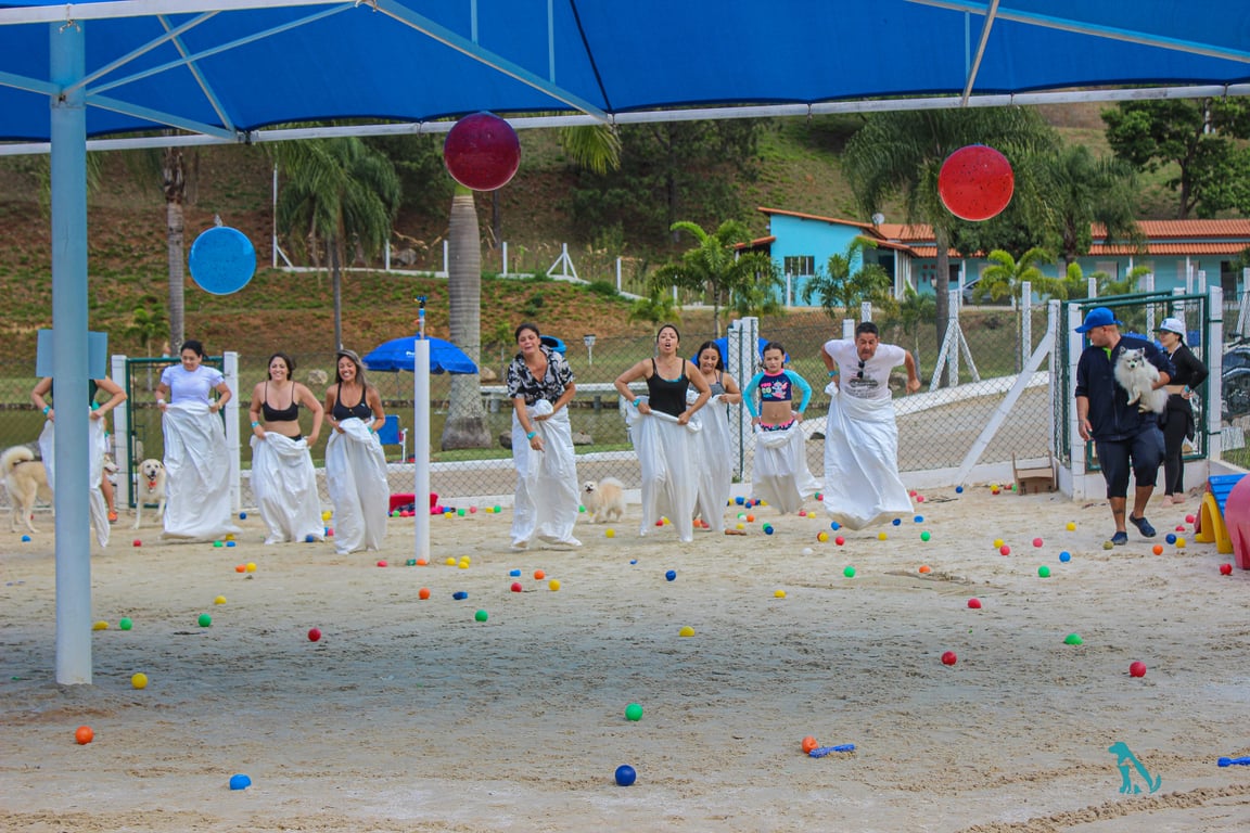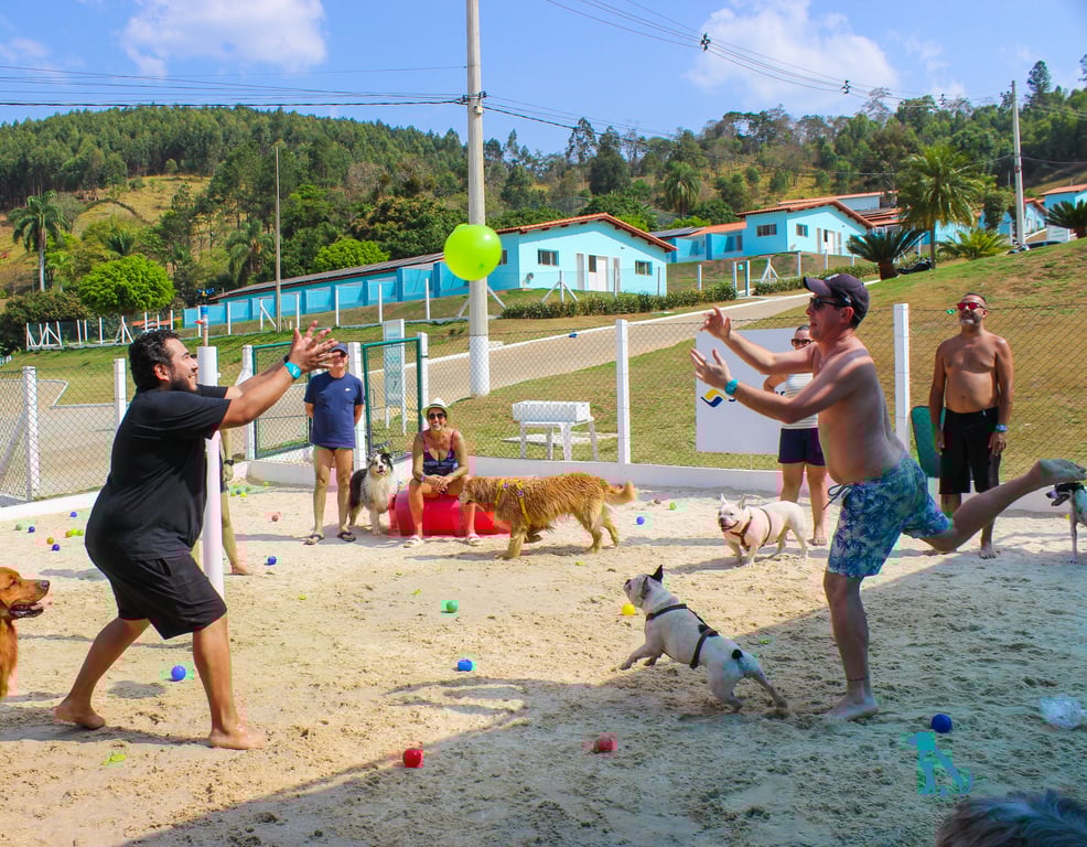 O espaço é totalmente dedicado aos pets, permitindo que eles brinquem, corram e interajam uns com os outros em um ambiente especialmente preparado para eles.