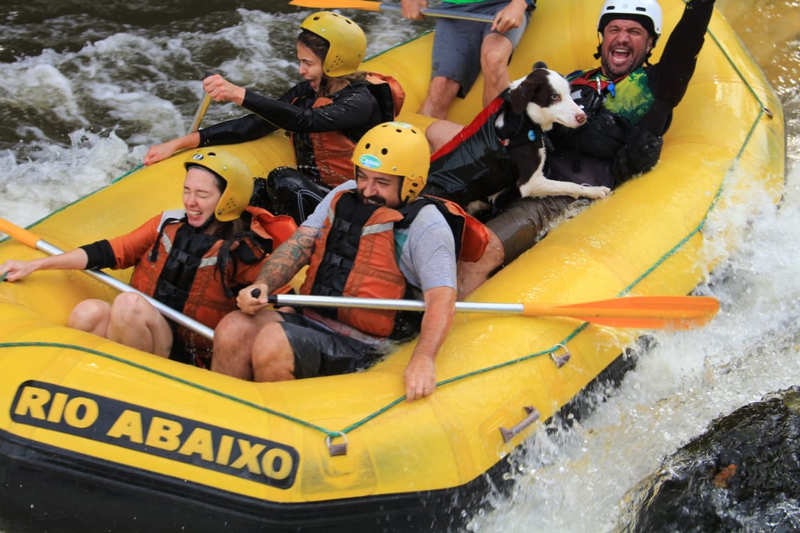 No rafting e na trilha, o guia do Rio Abaixo acompanha o percurso, podendo ou não ter outros clientes (com ou sem pet).