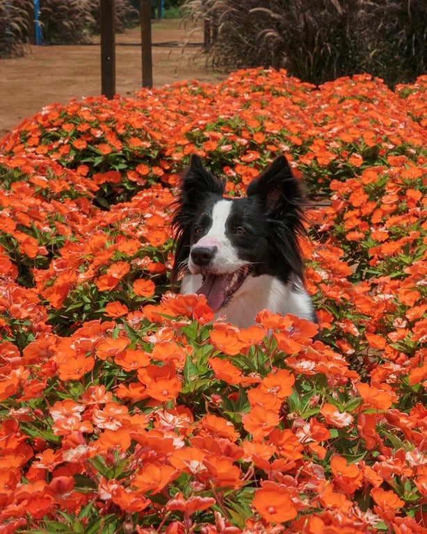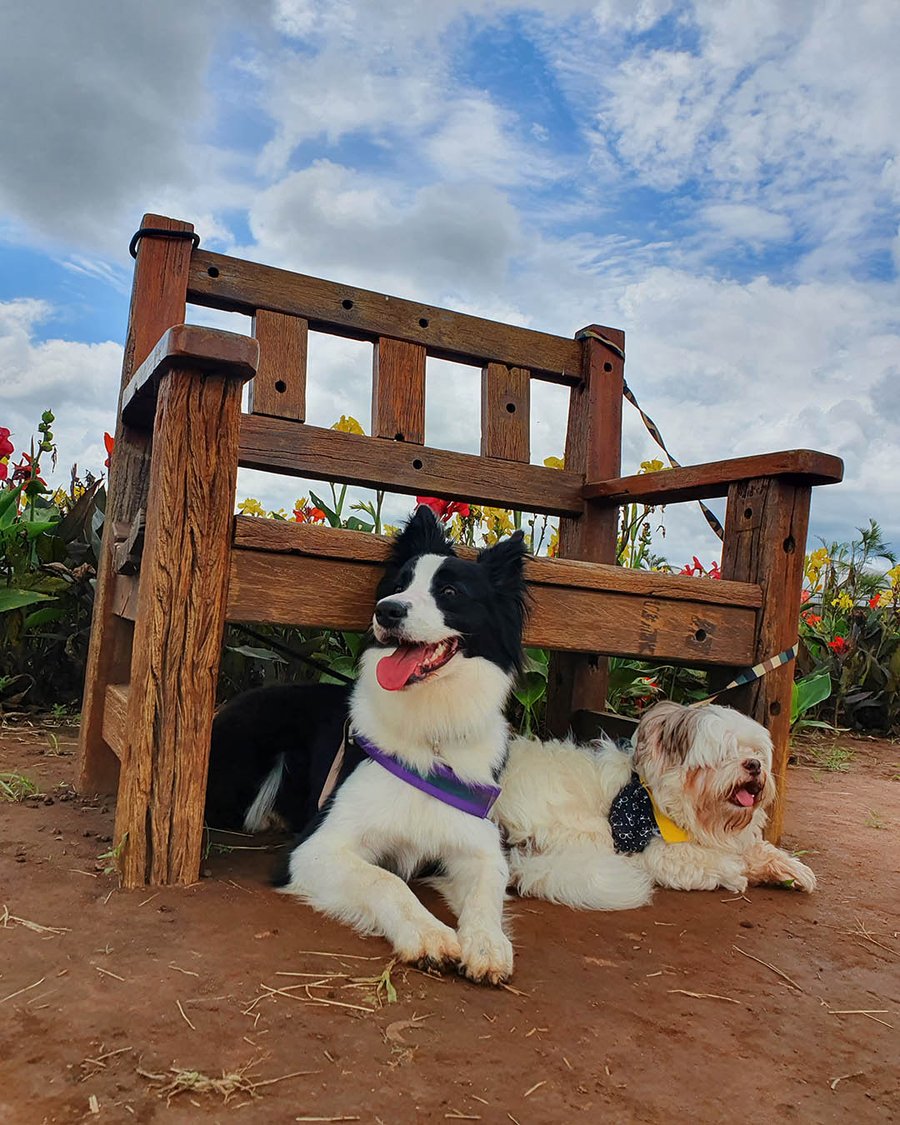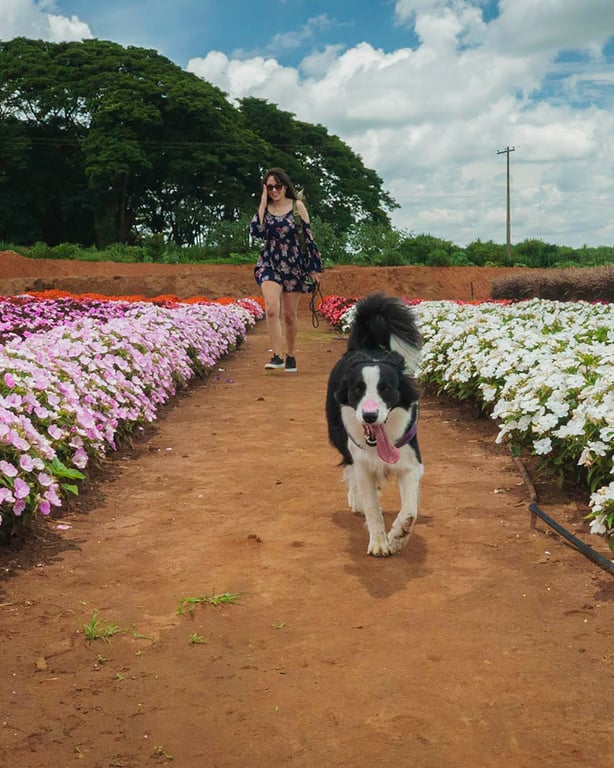 Nossos pets ficaram bem à vontade para correr e viver a vida nos campos de flores. Participamos do tour e depois foram correr livres. Foi bem gostoso.